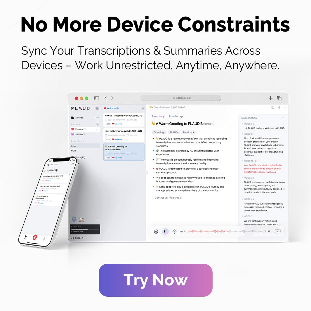 PLAUD NOTE & Lifetime Free AI Membership (Basic Plan 300 mins / month)